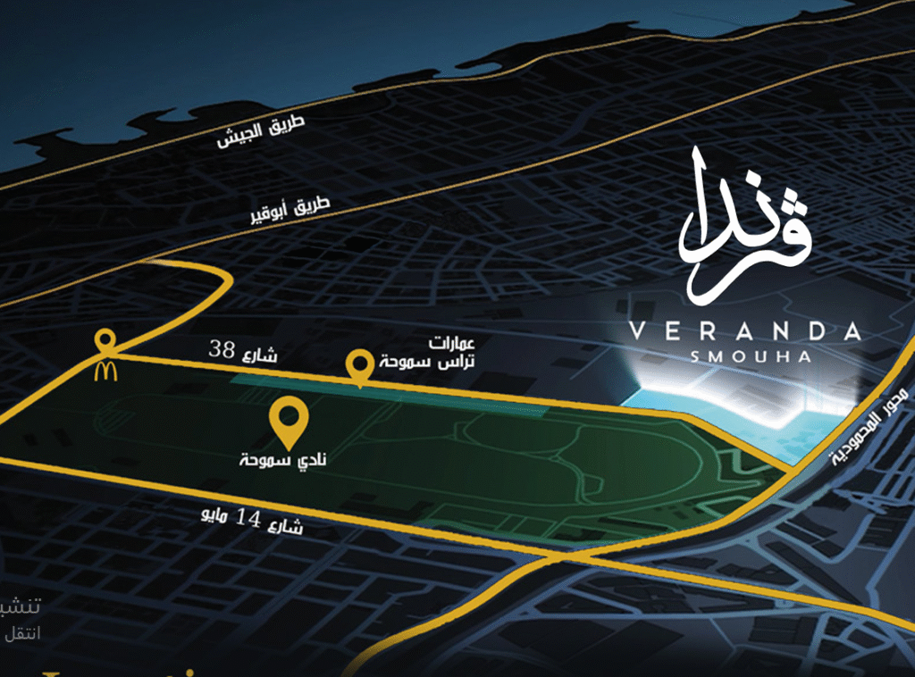 فراندا سموحه أرقى كومباوند متكامل فى سموحه يتميز بإطلالاته البانوراميه الرائعة على حدائق واسعة ونوافير مائيه وحمامات سباحه